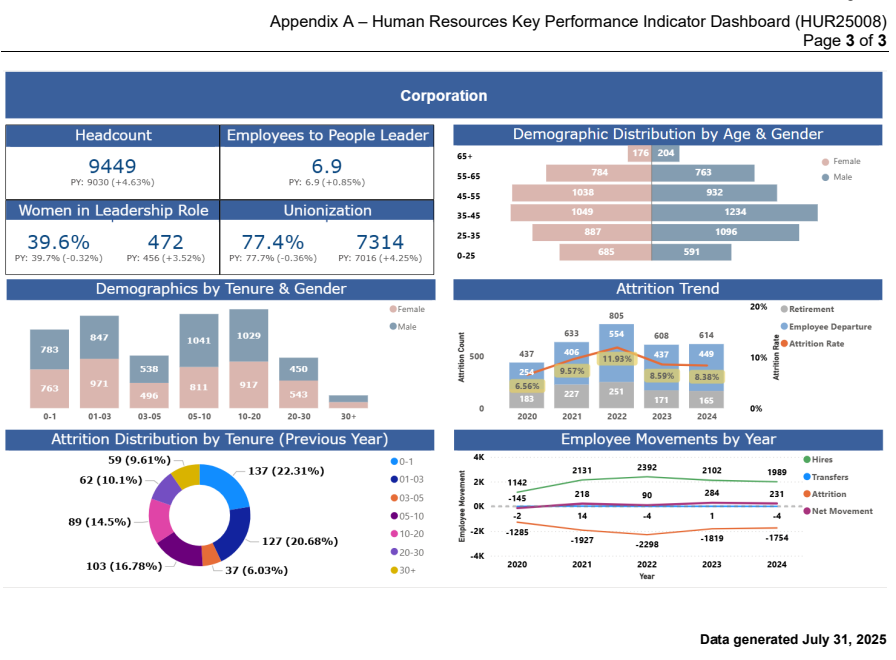 The City of Hamilton's July 31, 2025 human resources "dashboard" as presented to Hamilton City Council in October 2025.