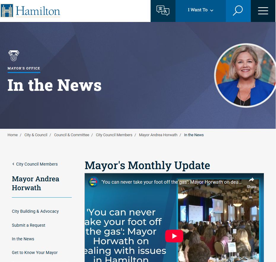 Hamilton Mayor Andrea Horwath’s webpages on the City of Hamilton website received a refresh this weekend.