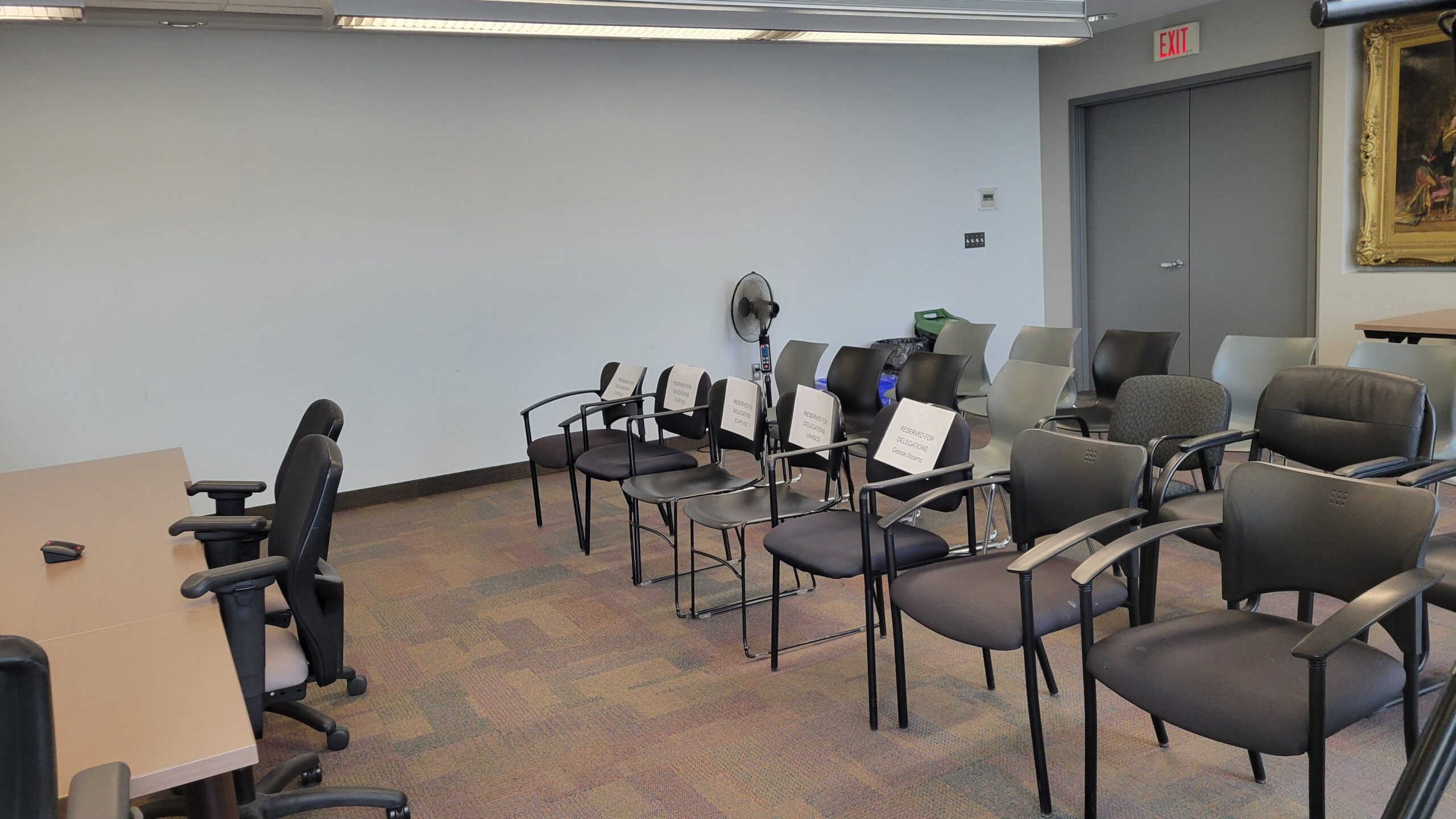The five registered delegates were given reserved seats at the front of the room.